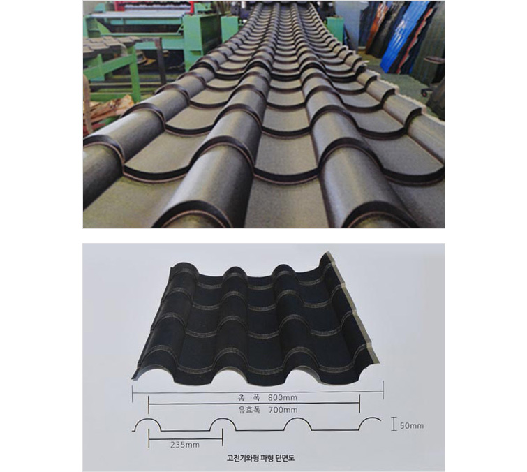 우리나라 고유의 섬세한 전통기와의 중후함을 그대로 살렸습니다. 가벼운 재질로 오래된 주택에도 하중을 주지 않습니다. 이음새가 없기 때문에 비가 새거나 녹슬지 않습니다. 기존의 기와를 걷지 않고 시공함으로 단열효과도 우수합니다. 주기적인 도색 필요없이 반영구적인 내구성이 뛰어나며 외관적으로도 언제나 새집 같은 느낌을 연출합니다.